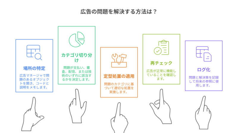 実務では、“広告を少し編集→再度の確認フローが出現→復旧”といった特殊ケースもあります。「変えたら審査が再走る」動きは覚えておくと早い。
